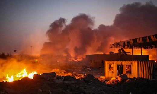 Hiện trường vụ nổ kinh hoàng tại Thiên Tân. |