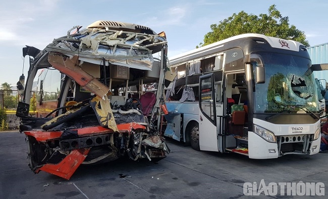 Hai xe khách bị hư hỏng nặng sau khi xảy ra tai nạn. Ảnh: Giao Thông |