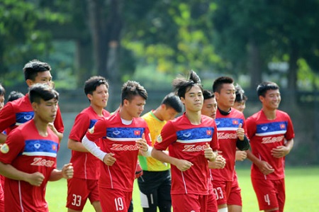 Các tuyển thủ U22 Việt Nam tập luyện sáng 16.8, sẵn sàng cho cuộc đọ sức với U22 Campuchia. Ảnh: báo Dân Việt |