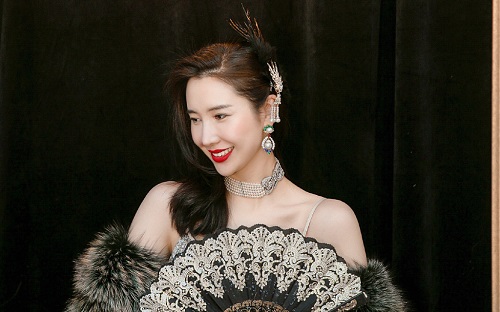 Hoa Hoa có nhan sắc mặn mà, thần thái sắc sảo và khí chất sang chảnh của một vị phu nhân. |