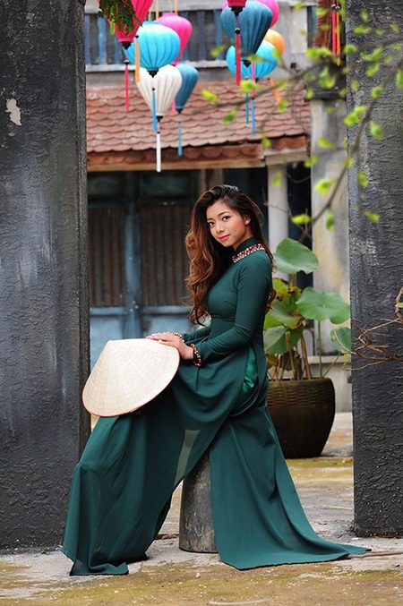 | Khi khoác lên mình tà áo dài truyền thống, Katleen Phan Võ cũng duyên dáng thướt tha không kém ai. |