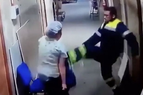 Dường như ban đầu nhân viên y tế và người phụ nữ có tranh cãi. Cuộc cãi vã trở nên dữ dội và nhân viên y tế bất ngờ túm lấy tóc người phụ nữ. Hắn tiến lại gần, hét lớn vào mặt người kia, sau đó đẩy mạnh người phụ nữ vào cửa phòng khám.