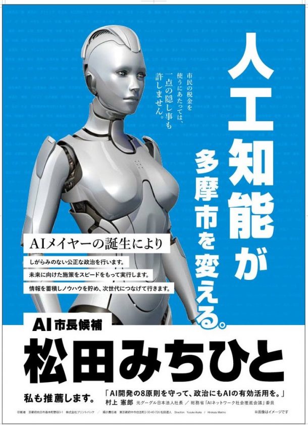 "Lần đầu tiên trên thế giới, AI tham gia tranh cử trong một cuộc bầu cử," ứng cử Michihito Matsuda tuyên bố trên Twitter. "Trí tuệ nhân tạo sẽ thay đổi thành phố Tama. Với sự ra đời của một thị trưởng AI, chúng tôi sẽ có được một nền chính trị công bằng. Chúng tôi sẽ thực hiện các dự án cho tương lai với tốc độ nhanh, tích lũy thông tin, và tạo nền tảng cho thế hệ tiếp theo”.