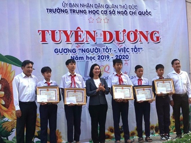 Báo Pháp luật TP.HCM đưa tin, ngày 6/1/2020, Trường trung học cơ sở Ngô Chí Quốc, quận Thủ Đức (TP.HCM) đã tổ chức lễ tuyên dương người tốt, việc tốt năm học 2019 – 2020.
