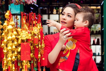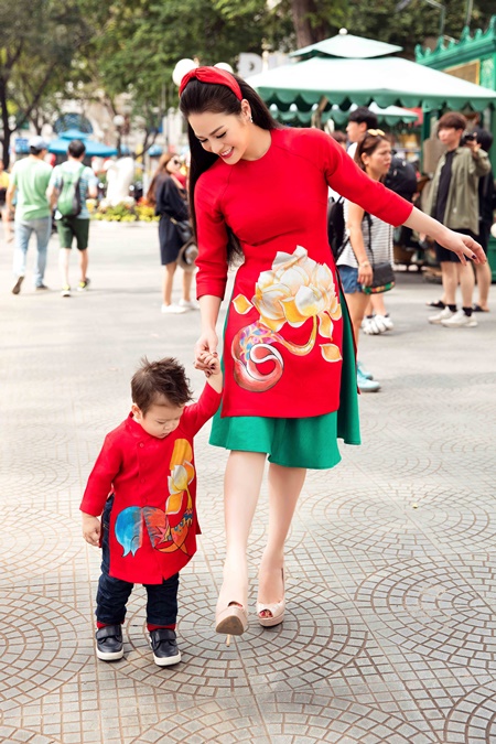 (ĐSPL) - Nhân dịp xuân về hai mẹ con Nhật Kim Anh đưa nhau ra phố chụp hình đón tết với áo dài cách tân của nhà thiết kế Phương Nguyễn.