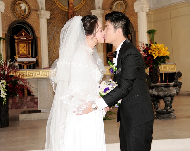 Lễ cưới của Nhật Kim Anh diễn ra rất giản dị và ấm áp với sự góp mặt của hai bên gia đình và bà con giáo xứ cùng bạn bè thân thiết của cặp đôi.