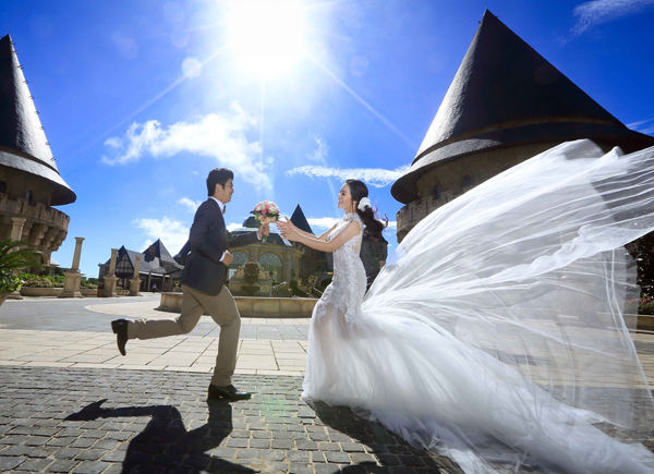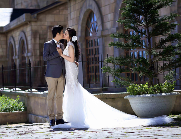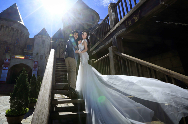 Đôi uyên ương cũng thực hiện một bộ ảnh cưới ngập tràn hạnh phúc tại khu du lịch Bà Nà Hills, Đà Nẵng. Ngoài ra cặp đôi còn đi tới nhiều tỉnh thành như Huế, Nha Trang và TP HCM để thực hiện nhiều bộ ảnh cưới, lưu giữ kỷ niệm tình yêu. |