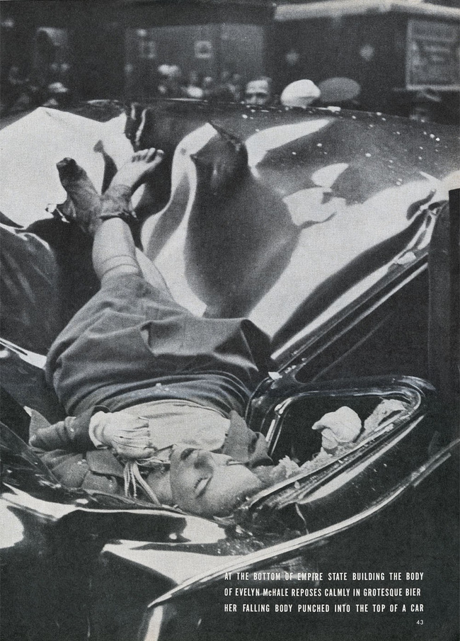 Một trong số đó chính là bức ảnh được chụp bởi nhiếp ảnh gia Robert C. Wiles, đăng trên bìa tạp chí Life vào ngày 12/5/1947. Bức ảnh đi kèm với nội dung: "Ở dưới chân tòa nhà Empire State, thi thể của Evelyn McHale nằm lặng lẽ trên nóc của một chiếc xe ô tô".