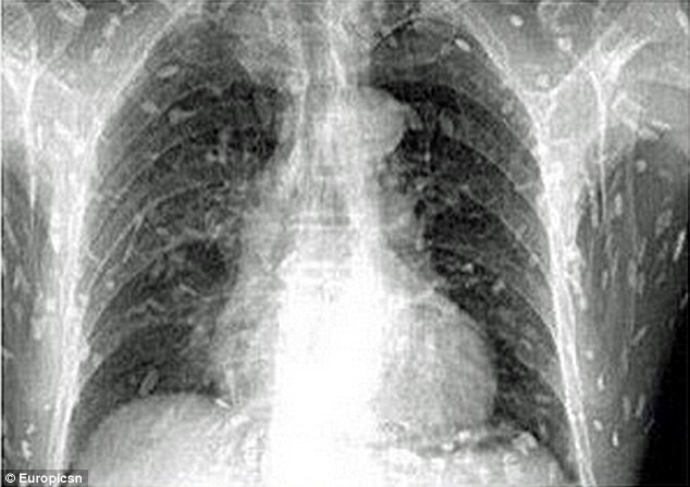 Phim chụp X-quang cho thấy sán dây làm tổ trong khắp cơ thể người đàn ông. |