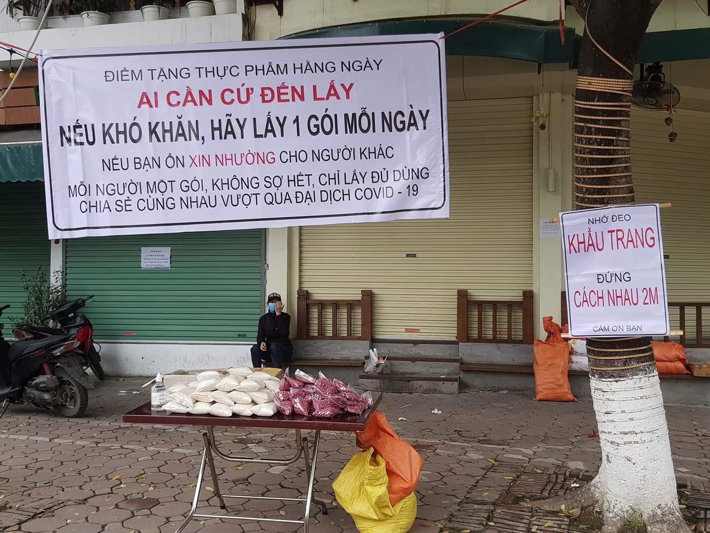 "Ai cần cứ đến lấy. Nếu khó khăn, hãy lấy 1 gói mỗi ngày. Nếu bạn ổn xin nhường cho người khác. Mỗi người một gói, không sợ hết, chỉ lấy đủ dùng. Chia sẻ cùng nhau vượt qua đại dịch Covid-19". Đó là thông điệp đang xuất hiện ngày một nhiều thêm trên khắp đường phố Thủ đô, giữa lúc tình hình căng thẳng của dịch bệnh Covid-19.