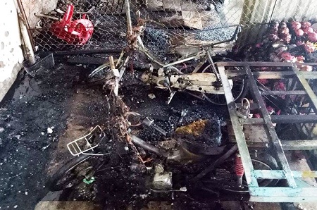 2 xe máy bị cháy rụi. Ảnh: báo Tri thức trực tuyến |