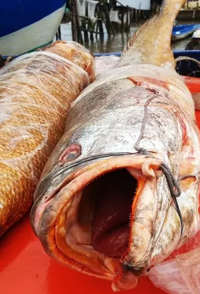 Chiều 15/9, trao đổi trên Zing.vn, anh Minh Luân ở xã Đất Mũi, huyện Ngọc Hiển (Cà Mau), cho biết vẫn còn ướp đá bảo quản cặp cá sủ vàng có tổng trọng lượng 70 kg. Trong đó, con nhỏ nặng 32 kg và con to 38 kg, dài hơn 1 m.