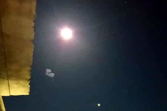 Các vật thể phát sáng bị hệ thống phòng không Syria bắn hạ. Nguồn: SANA