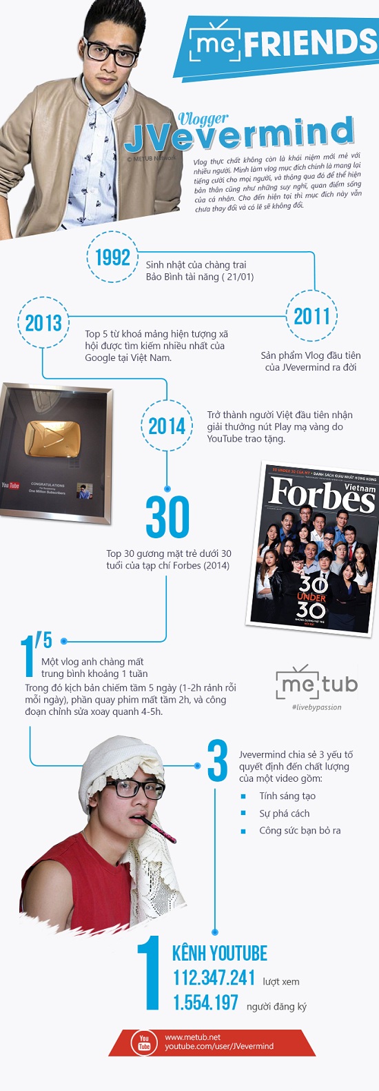 (ĐSPL) – Jvevermind vinh dự là nhân vật đầu tiên của dự án mới của METUB Network mang tên meFRIEND. Qua đây người hâm mộ anh có cơ hội nhìn lại và kỳ vọng vào chặng đường sáng tạo của chàng trai "Youtube" tài năng.