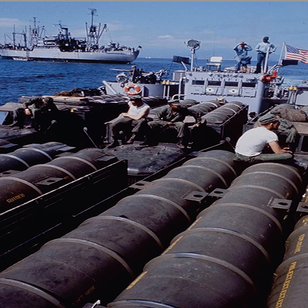 Vũ khí phục vụ cuộc chiến tranh xâm lược, trên các tàu đổ bộ của Mỹ khi vào bãi biển Đà Nẵng. |