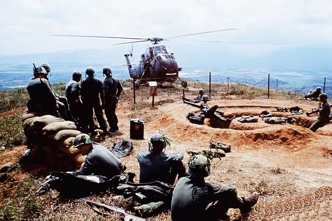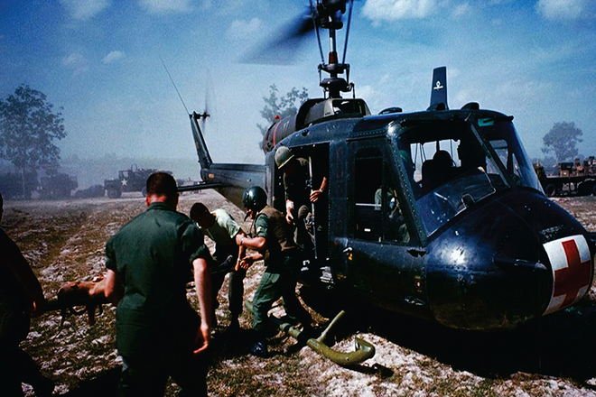 Máy bay trực thăng vận chuyển lính Mỹ bị thương về căn cứ. |
