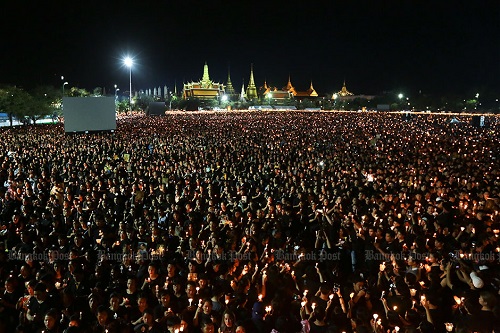 Ngày 22/10/2016, hàng trăm nghìn ngọn nến được thắp lên nhằm tưởng nhớ Quốc vương Bhumibol trước Sanam Luang. Ảnh: Bangkokpost |