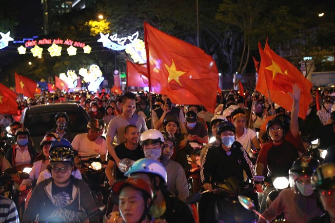 NHM bóng đá nước nhà đổ ra đường ăn mừng chức vô địch AFF Cup 2018 của ĐTQG Việt Nam. |