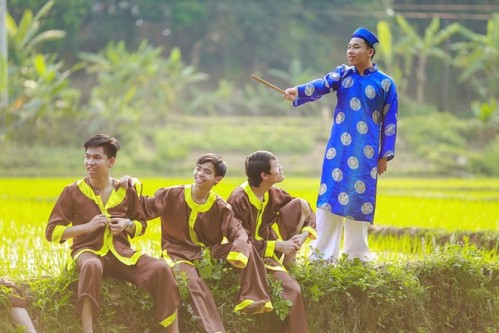 V?i mong mu?n t�i hi?n cu?c s?ng th?i x?a, nh�m h?c sinh l?p 12A, tr??ng THPT T� Hi?u ?� c�ng nhau ho� th�n v�o vai nh?ng anh l�nh, ng??i n�ng d�n v� ??a ch? trong b? trang ph?c ??m ch?t x?a.