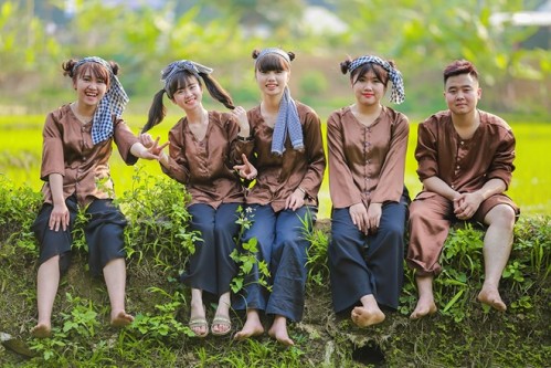 Mu?n kh?c ho? l?i cu?c s?ng c?a nh?ng ch�ng trai, c� g�i v�ng cao, t?p th? l?p 12A tr??ng THPT Nguy?n Hu?, Ninh B�nh ?� c�ng nhau ch?p m?t b? ?nh ?�ng nh? trong trang ph?c d�n t?c.