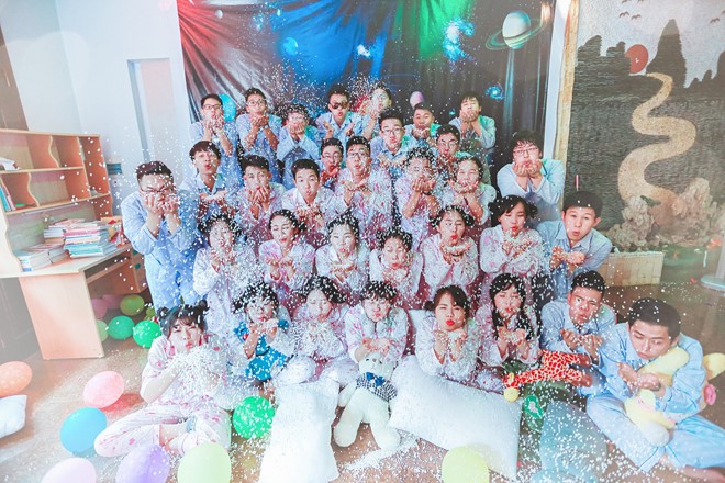 Theo chia s? c?a Tr?n Ng?c Mai (b� th? l?p), c? l?p�?� m?t kh� nhi?u th?i gian v� c�ng s?c chu?n b? cho bu?i ch?p ?nh k? y?u nh?ng th?i ti?t kh�ng ?ng h?. "Trong l�c c? l?p bu?n b� v� ph?i ho�n l?ch ch?p th� m?t th�nh vi�n n?y � t??ng ch?i ?�a d??i m?a. � t??ng n�y nhanh ch�ng nh?n ???c s? ?ng h? c?a t?p th?", n? sinh chia s?.