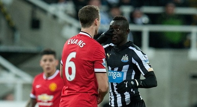 ![]() Papiss Cissé và Evans gầm ghè nhau. |
