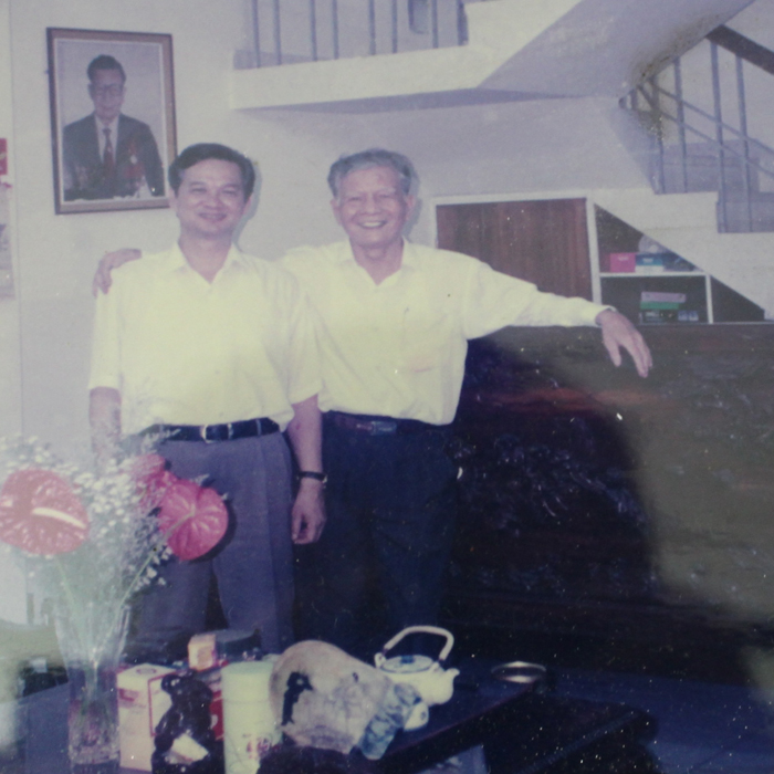 Cụ Huỳnh Việt Thắng chụp hình cùng Phó Thủ tướng Nguyễn Tấn Dũng vào năm 2000 (ảnh gia đình nhân vật cung cấp). |