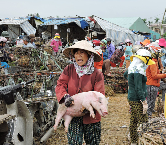 “Tui chẳng nhớ nổi mình đã bồng bao nhiêu con heo. Từ cái thời mỗi con heo chỉ được 500 đồng đến 1.000 đồng và giờ là 5.000 đồng. Mình bồng heo sang rọ của các lái buôn, hoặc bồng heo cân cho lái. Hồi xưa vui lắm. Bồng heo rồi lái cân luôn cả người cả heo, trừ cân nặng người là ra heo. Bà này nặng mấy, tui nặng mấy, cả chợ biết. Lạ lùng rứa đó. Sau này lái buôn ít dùng cách này nữa”, chị Nguyễn Thị Phi (trú xã Quế Xuân 1) chia sẻ.