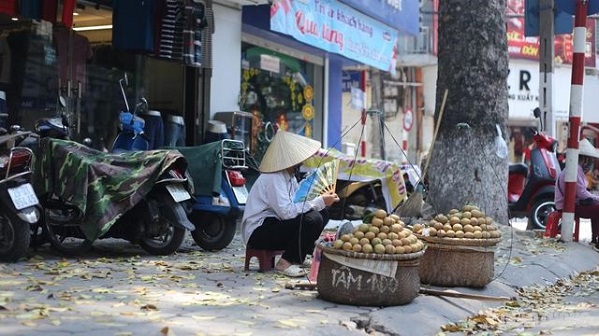 Tại khu vực phố Nhà Thờ, người bán hành, tỏi... đi rong dưới cái nắng rát da. Ảnh: An ninh Thủ đô. |
