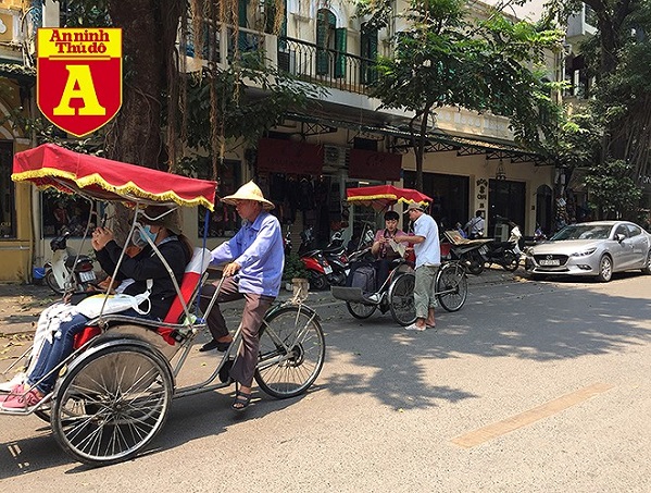 Những chiếc xích lô vẫn chở khách du lịch dù nắng nóng. Ảnh: An ninh Thủ đô |