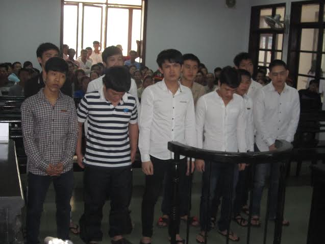 Theo đó, các bị cáo gồm: Nguyễn Hữu Hạnh (còn gọi Hạnh nhỏ, SN 1974), trú tại 13C Chí Linh, Nha Trang; Nguyễn Đức Thi (còn gọi Cu nu, SN 1980), trú tổ 4, phường Ngọc Hiệp, TP Nha Trang; Lê Thanh Nhàn (còn gọi Bé hai, SN 1990), ở tại 52 Phong Châu, TP Nha Trang; Lê Quang Sang (còn gọi là Mập Đùm, SN 1989), trú thôn Dầu Sơn, xã Suối Tân, huyện Cam Lâm (Khánh Hòa); Phan Nhật Dũng (còn gọi Chó lát, SN 1994), trú tại tổ 7 Lư Cấm, phường Ngọc Hiệp, TP Nha Trang; Trần Thanh Tú (SN 1994), trú tổ 1, phường Vĩnh Hiệp, TP Nha Trang; Huỳnh Ngọc Nhân (SN 1996), hiện ở tại 6 Trần Quốc Toản, TP Nha Trang; Lê Thanh Hải (còn gọi là Su, SN 1996), trú 23/3 Trần Nhật Duật; Nguyễn Đức Nhựt Sơn (SN 1996), trú 5 Chí Linh, TP Nha Trang và Nguyễn Võ Duy Sanh (SN 1986), trú tổ 12 Hòa Trung, phường Vĩnh Hòa, TP Nha Trang).