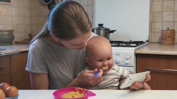 Dùng điện thoại di động để dụ con ăn cần dừng ngay - ảnh minh họa. |