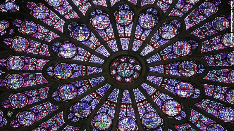 Cửa sổ hoa hồng tại nhà thờ Đức Bà Paris được coi là những cửa sổ bằng tranh kính nổi tiếng nhất, hoàn hảo nhất.