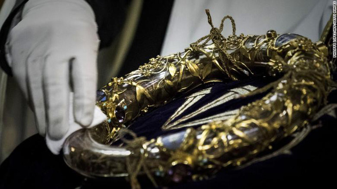 "Đáng chú ý, vương miện gai bằng vàng, áo choàng của nhà vua của Saint Louis, vị vua thế kỷ thứ 13 của Pháp, may mắn cũng được đưa đến nơi an toàn", bà Anne Hidaldo nói thêm.
