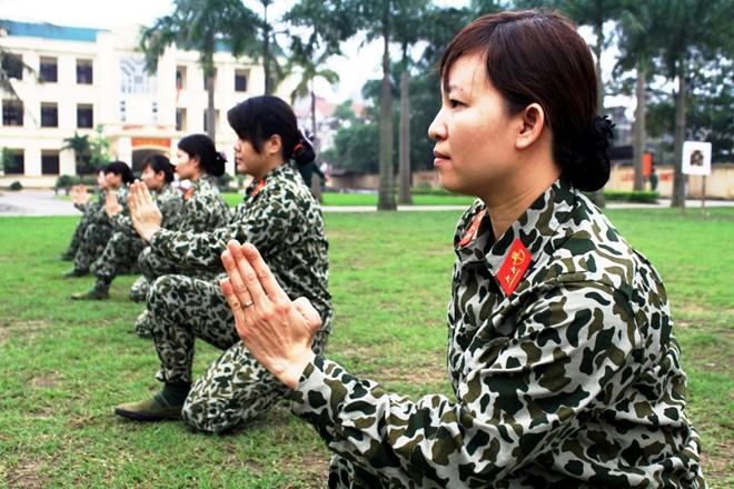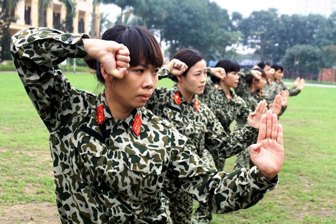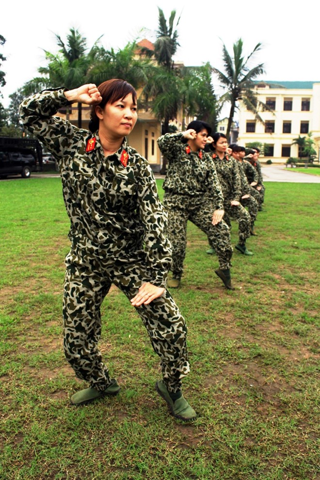 Bình thường, họ là những “bóng hồng” quen với công việc nhẹ nhàng. Nhưng khi ra bãi tập, thì họ can trường, dũng cảm và mau lẹ, ra đòn chiến đấu dũng mãnh.