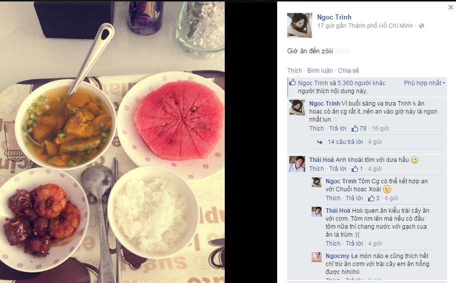 Những món ăn bình dân đến không ngờ của Ngọc Trinh. |