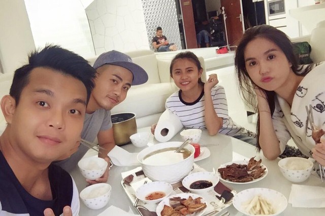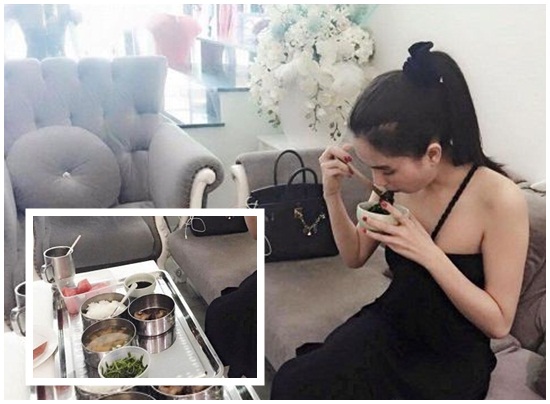 Ngọc Trinh với bữa ăn đạm bạc. |