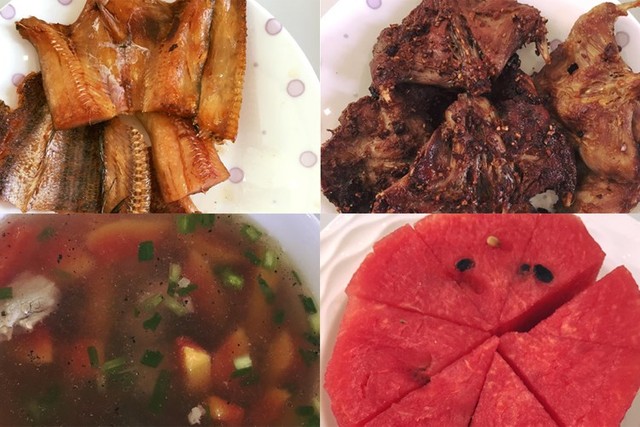Sự đối lập của ngôi nhà hàng chục tỷ với bữa cơm tối đơn giản. |