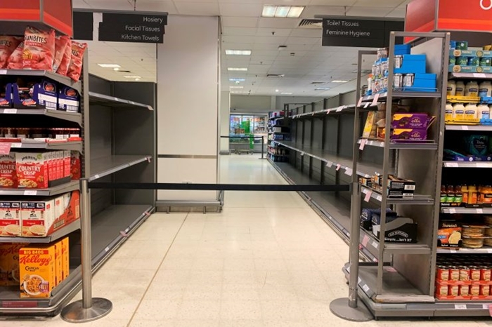 Các kệ trống tại một siêu thị ở Canary Wharf, London, Anh. Ảnh: Reuters |