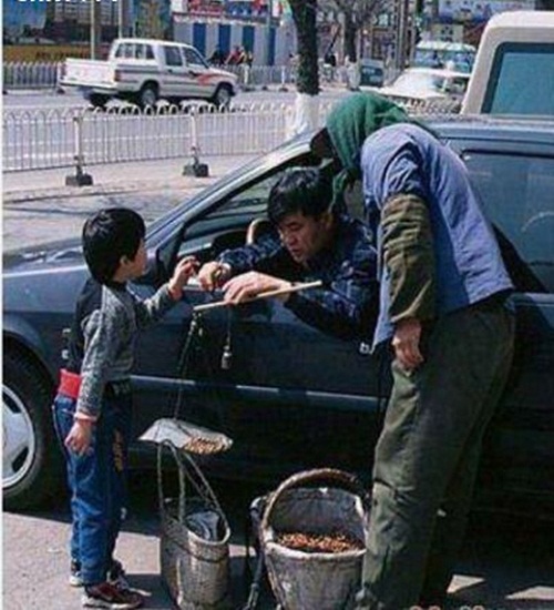 Một vị khách giàu có đi xe hơi mà lại so đo tính toán từng cân từng lạng với một cậu bé bán hàng rong.