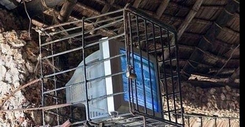 | Muốn an toàn thì phải làm lồng sắt để bảo vệ ti vi như thế này |