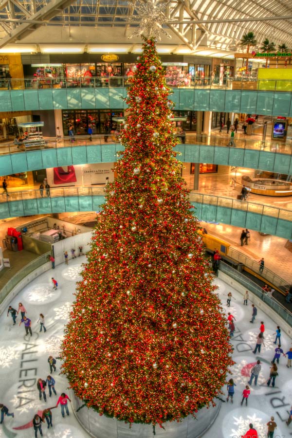 Cây thông đặt trong lòng khu trung tâm Dallas Galleria được xem là cây thông Giáng sinh trong nhà lớn nhất tại Mỹ với hơn 10.000 đồ trang trí và khoảng 250.000 chiếc đèn gắn trên đó.