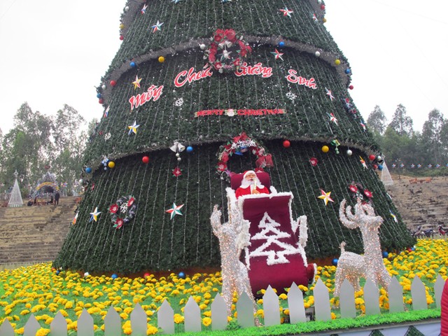 Cây thông Noel với chiều cao 41 m và đường kính 36 m được các giáo dân ở Linh địa Trại Giáo, xã Nghi Phương, huyện Nghi Lộc (Nghệ An) dựng lên để chào đón Giáng sinh. |