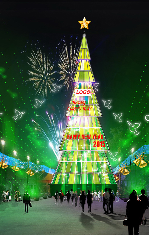 Cây thông trang trí bằng màn hình Led độc đáo cũng ở Trung tâm Vincom, Bà Triệu. |