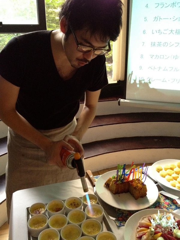 Là người Nhật Bản gốc 100\%, nhưng ngày ngày người ta vẫn thường thấy anh hăng say đứng bếp cùng với các bạn học viên trẻ trong một studio bánh ngọt nằm trên đường Lê Thánh Tôn quận 1.