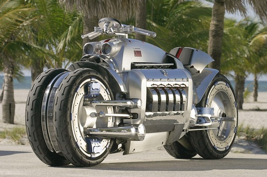 | “Con quỷ tốc độ” Dodge Tomahawk được trang bị khối động cơ V10, 8,3 lít, loại động cơ sử dụng trên những chiếc xe hơi thể thao Viper. Nhờ khối động cơ siêu khủng, Dodge Tomahawk có thể tăng tốc từ 0-100 km/h trong 2,6 giây và đạt vận tốc tối đa 672 km/h. Mẫu mô tô này được trang bị 2 bánh xe phía trước và 2 bánh phía sau để tăng sự ổn định khi vận hành. Giá bán của Tomahawk ở mức 555.000 USD. |
