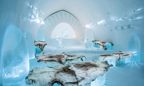 Nội thất một gian phòng của Khách sạn băng ở Jukkasjärvi. |