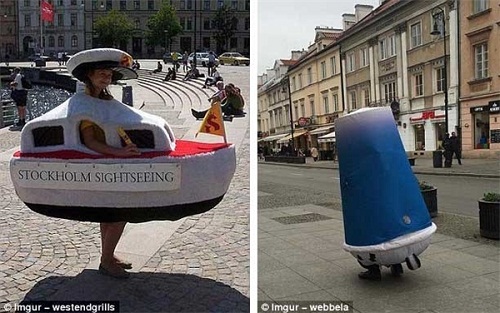 Nhiều nhân viên phải hóa trang thành các đồ dùng có hình thù kì lạ để quảng cáo cho những sản phẩm của công ty mình.
