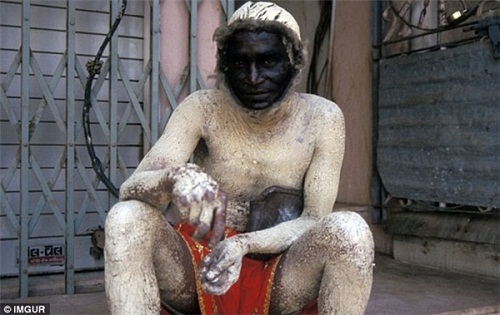 Người đàn ông Ấn Độ trong ảnh này được thuê và ngụy trang như một con vượn để “chống lại cuộc xâm lăng của bầy khỉ”. Bạn dám làm nghề này không?