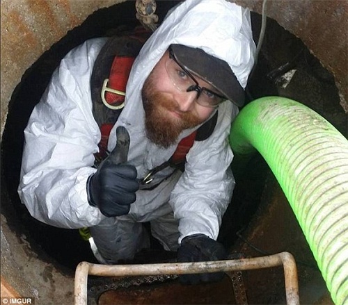 Một người công nhân hài hước chia sẻ công việc của mình: “Tôi sắp khám phá một bể chứa nước thải tới 45 năm tuổi”. |
